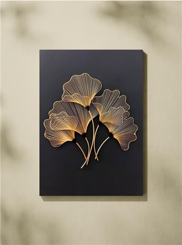 Crafted with precision, the metallic gold lines mimic the delicate veins of leaves, creating a striking 3D effect that catches light and shadow beautifully. Perfect for living rooms, bedrooms, hallways, or office spaces, this wall art serves as a timeless focal point that complements both modern and classic décor styles.