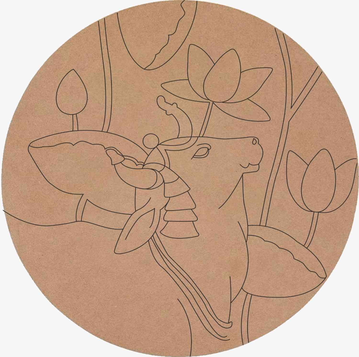 Bring home the serene essence of Vrindavan with this beautifully crafted “Vrindavan Grace – Wooden Krishna Panel.” Featuring a minimal yet divine line art of Lord Krishna with a sacred cow surrounded by blooming lotus flowers, this circular panel symbolizes peace, devotion, and harmony with nature.